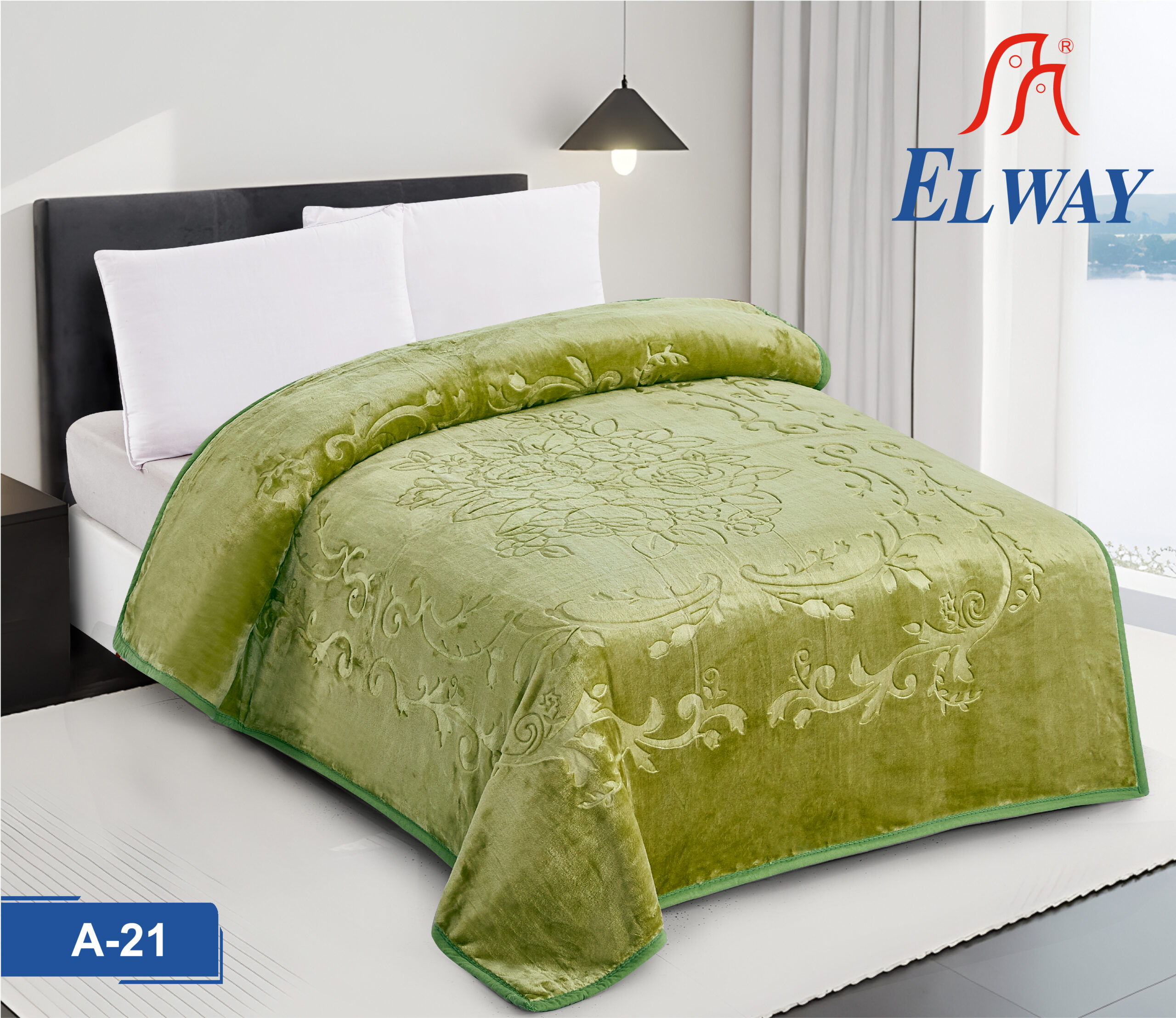 Ekskluzywny, gruby koc Elway 200×240 cm o wadze 3 kg to połączenie luksusowej miękkości akrylu z eleganckim, wytłaczanym motywem kwiatowym w kolorze oliwkowym.