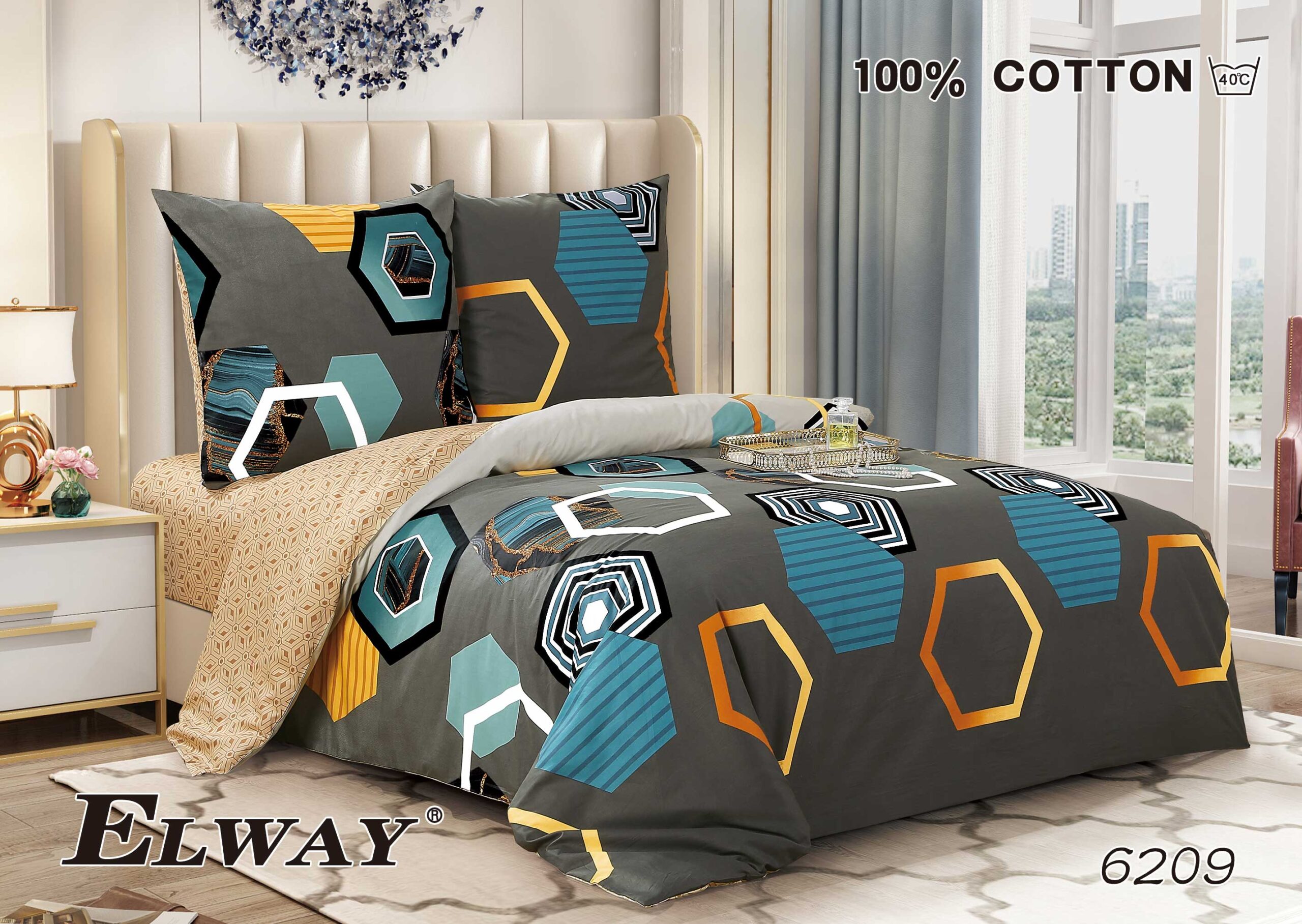 Ekskluzywna pościel marki Elway wykonana z najwyższej jakości satyny bawełnianej zapewnia wyjątkową miękkość, trwałość oraz naturalną cyrkulację powietrza podczas snu. Dzięki zastosowaniu nowoczesnej technologii druku, dwustronne wzory zachowują intensywne kolory nawet po wielu praniach, a praktyczny zamek błyskawiczny gwarantuje wygodę użytkowania.