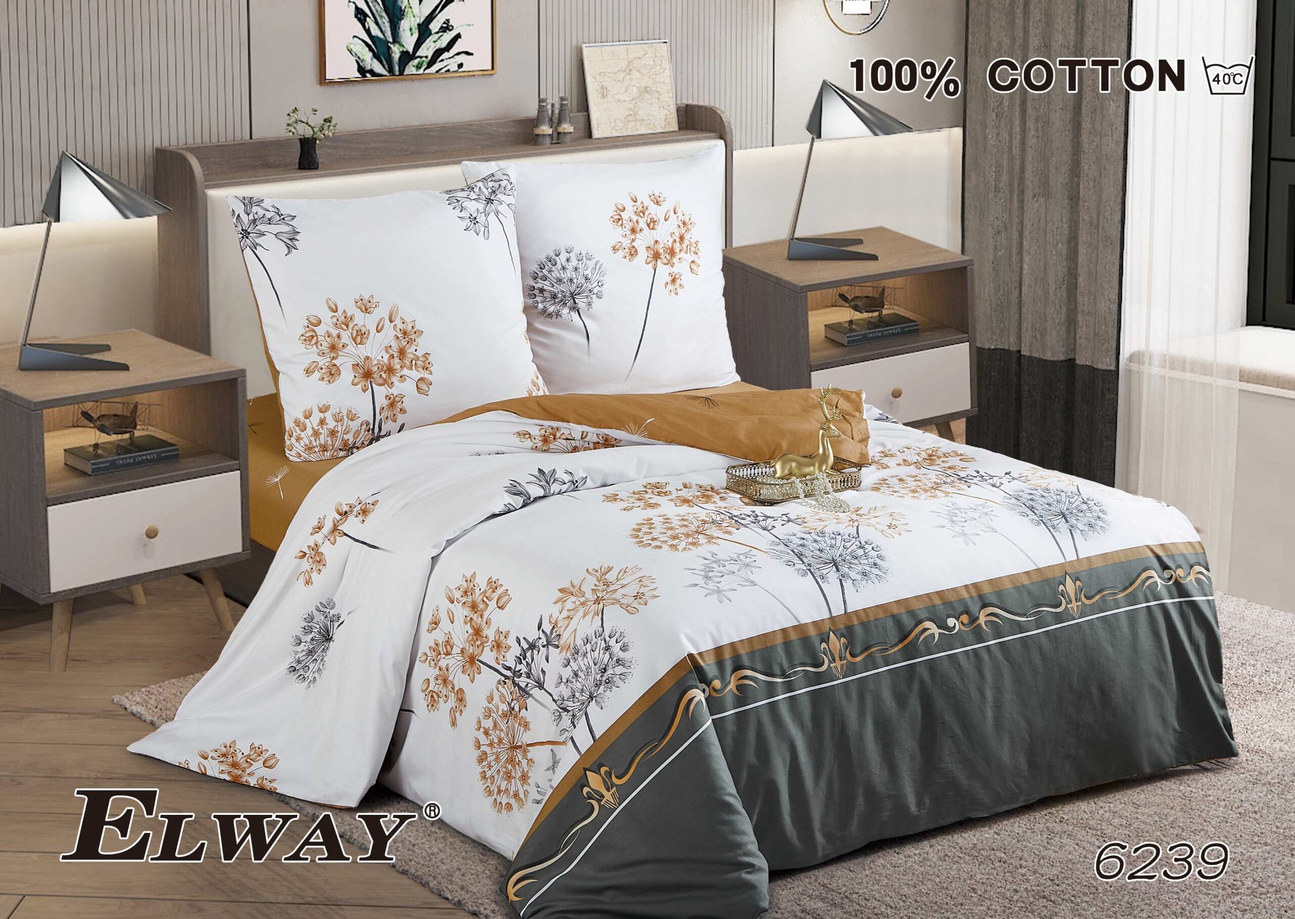 Ekskluzywna pościel marki Elway wykonana z najwyższej jakości satyny bawełnianej zapewnia wyjątkową miękkość, trwałość oraz naturalną cyrkulację powietrza podczas snu. Dzięki zastosowaniu nowoczesnej technologii druku, dwustronne wzory zachowują intensywne kolory nawet po wielu praniach, a praktyczny zamek błyskawiczny gwarantuje wygodę użytkowania.
