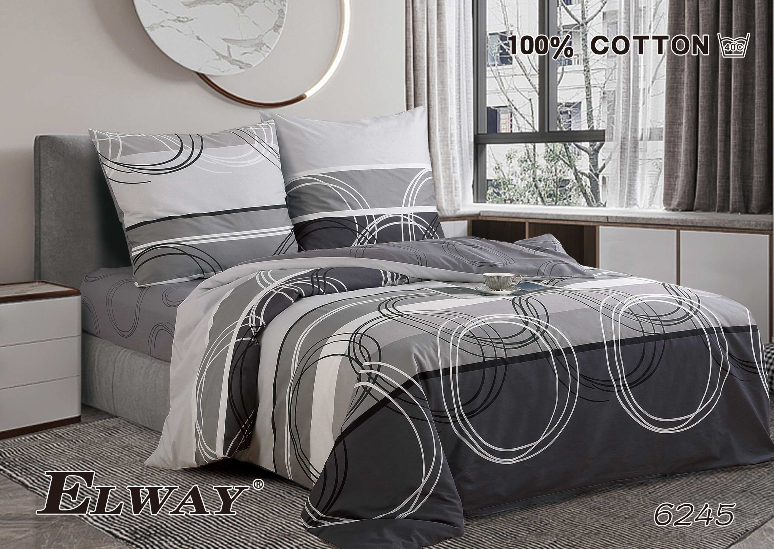 Ekskluzywna pościel marki Elway wykonana z najwyższej jakości satyny bawełnianej zapewnia wyjątkową miękkość, trwałość oraz naturalną cyrkulację powietrza podczas snu. Dzięki zastosowaniu nowoczesnej technologii druku, dwustronne wzory zachowują intensywne kolory nawet po wielu praniach, a praktyczny zamek błyskawiczny gwarantuje wygodę użytkowania.