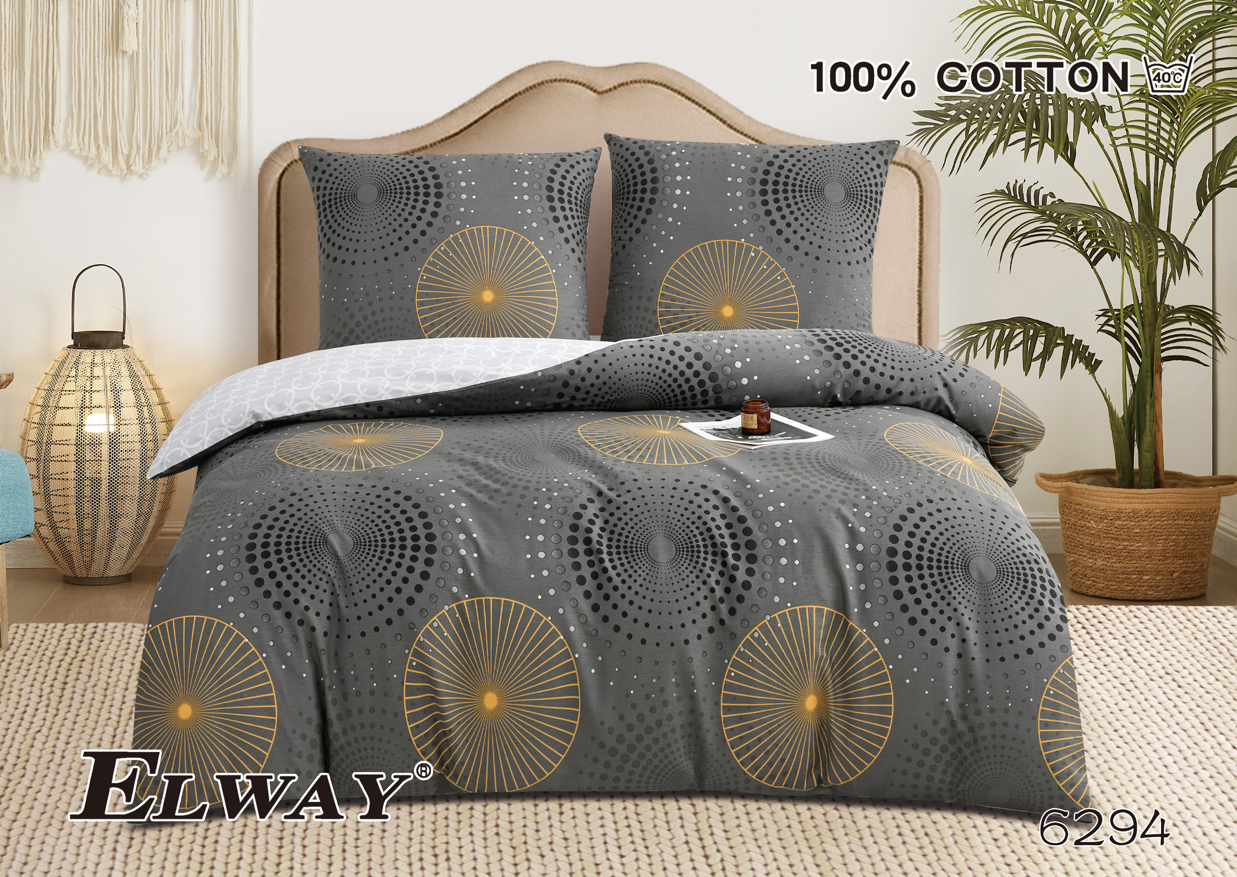 Ekskluzywna pościel marki Elway wykonana z najwyższej jakości satyny bawełnianej zapewnia wyjątkową miękkość, trwałość oraz naturalną cyrkulację powietrza podczas snu. Dzięki zastosowaniu nowoczesnej technologii druku, dwustronne wzory zachowują intensywne kolory nawet po wielu praniach, a praktyczny zamek błyskawiczny gwarantuje wygodę użytkowania.